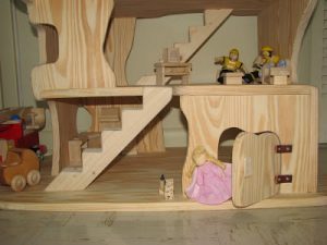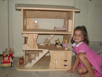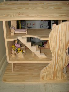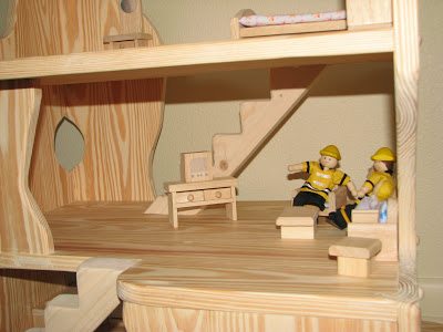 I saw these amazing dollhouses online, waldorf style, made my a German company called Kinderkram and a US one called Elves and Angels. While both equally magnificent, at $300 I just couldn’t justify it since we had gotten a dollhouse last year from Plan Toys. I wasn’t overly happy with it though, and just itching to replace. Lilli didn’t even care that I wanted to replace it, so you know she didn’t love it either LOL. So, I showed the pictures I linked to Stephen, and he built us one! FROM SCRATCH. As in, he took boards of wood, cut them, joined them, sanded them, etc. I helped design and sand, but he put in the 30+ hours of work. Now we know why they are so expensive!!!!! The final product, however, is simply breathtaking. I think we’ll be enjoying it for generations. Remember, you can click on the photos to see them bigger.