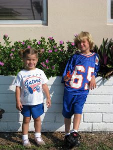 No, not UF. I mean, it’s not like we don’t still LOVE the Florida Gators but we have our own mini-Gators now! Mickade is playing flag football with the Key West Junior Football League, and Lilli is cheering…both for the Gators! They are both so cute. Mickade is #65 and plays the offensive line, and does a pretty good job knocking kids down. He’s learning a lot about the game and getting better and better. In fact, at practice one day they were doing some passing and he got quite a few “wow’s” when they saw his arm! Lillian is the youngest on her team and pretty impressive if I can say so myself. But of course I’m her mom. Her biggest problem at games is that she wants to look at her favorite big girl cheerleaders in the back line on her team instead of the audience. She’s such a little munchkin out there!