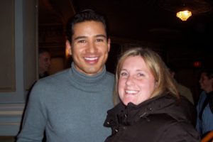 We went to the theatre Thursday night to see A Chorus Line. On the way in, who was about 2 people in front of me but MARIO LOPEZ!!!! I couldn’t believe it, here I am 5 feet from Slater from Saved By the Bell! I didn’t want to bother him though, I hate it when people bug stars who are just out trying to be normal. However, after the show, he was very gracious and signing autographs…so I figured why not? He was so kind…and GORGEOUS!! I have to say, it’s not makeup or TV lighting making him look so perfect…he just IS. His skin is perfect, his hair, his body…oh my! So I’ve now had Mario Lopez’s arm around me. 🙂