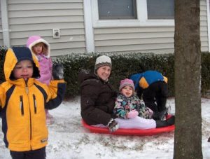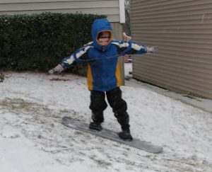 Yes, we FINALLY got some snow!!! Granted it’s gone today because it’s raining, but we took full advantage of the couple inches we got yesterday afternoon. Mickade finally got to try out his snowboard after 2 months of waiting (and did quite well) and all the kids got to sled and throw snowballs. It was a lot of fun. And Lilli of course made me sled with her.