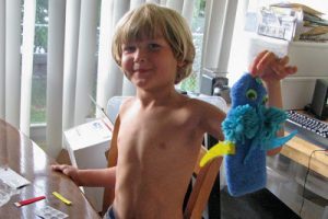 My mom was down this weekend and got the kids a sock puppet kit…it was a huge hit! They bugged us for probably about an hour or so from the moment I got out of bed in the morning (I had said we’d make them in the morning the night before) until I finally was ready…I was ready to throw the thing out by the time we did it LOL. They LOVED it though.